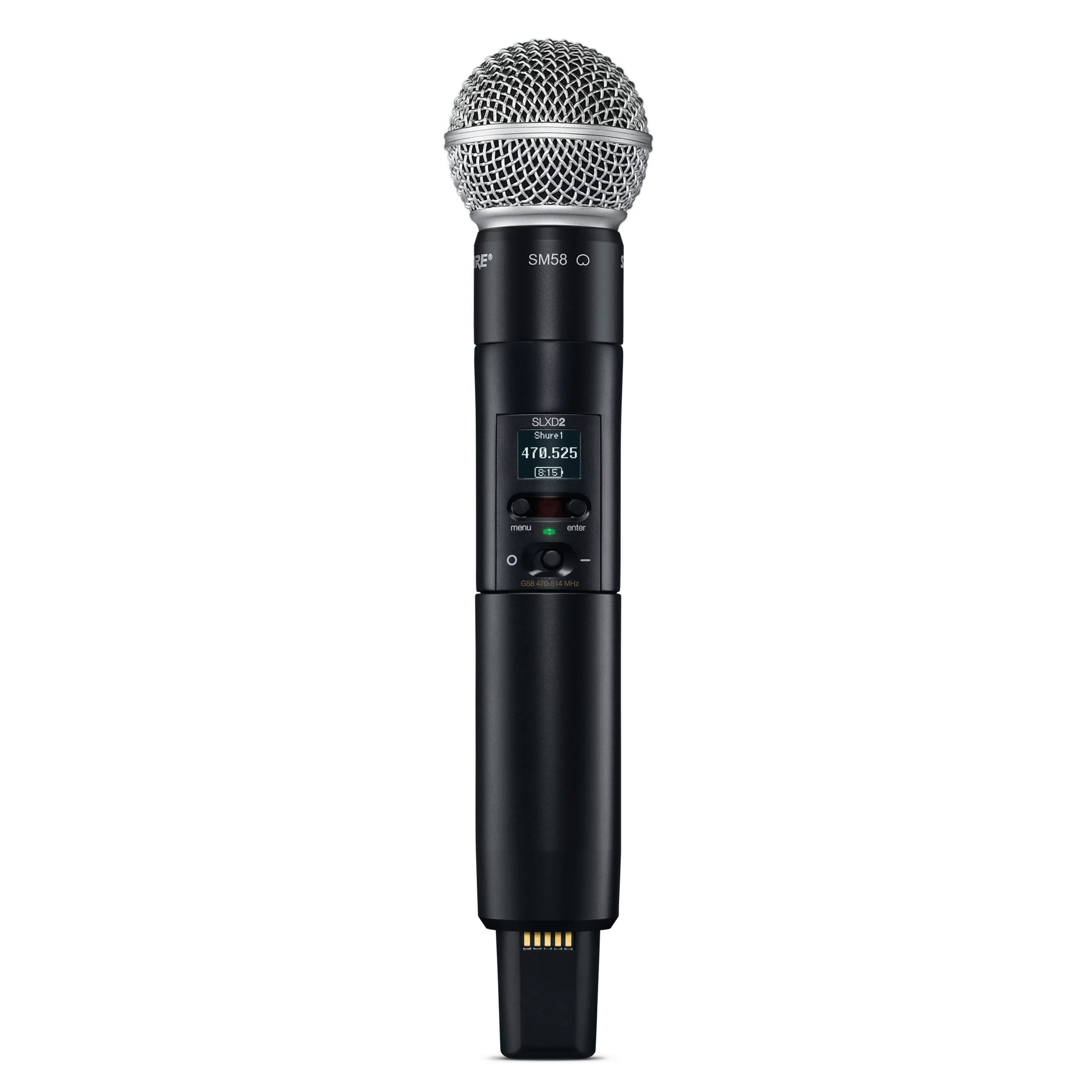 Featuring the legendary SM58® Cardioid Dynamic Microphone capsule on top of the SLXD2 handheld wireless transmitter, the SLXD24/58 provides transparent digital audio and rock-solid RF stability for lecture halls and live performances.